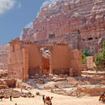 In direzione ovest della Via Colonnata si trovano i resti del tempio dei Leoni Alati, a cui un tempo si accedeva attraverso un ponte sul Wadi Musa, le cui fondamenta sono tuttora visibili. Gli scavi iniziarono nel 1974. E ‘probabile che il Tempio dei leoni alati sia stato costruito nella prima metà del I secolo aC, e successivamente modificata intorno il 27 d.C Si ritiene fosse dedicato alla dea della fertilità,